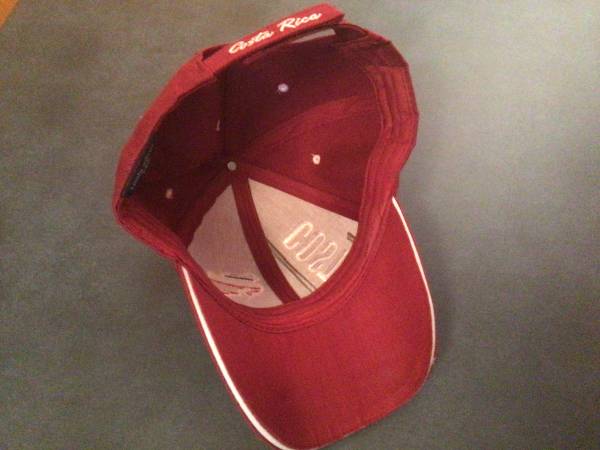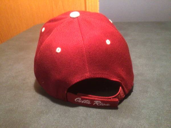 This is a very nice hat from Costa Rica. The design on the front is a map of the country, which includes the national flag. The flag of Costa Rica is also embroidered on the left side of the hat. This hat is new. I bought it as a souvenir and have never worn it. Adjustable size.