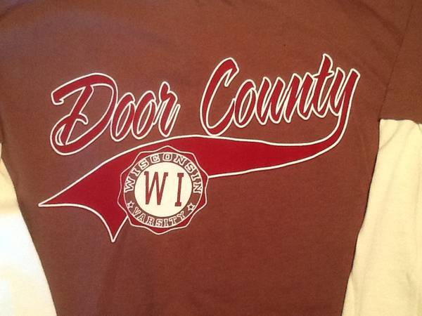 This is a very nice souvenir shirt from Door County, Wisconsin. Like new. Washed once and never worn. Size medium. 100% cotton. Machine washable. Keywords: clothing