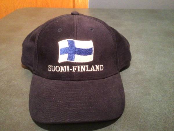 This is a very nice baseball cap from Finland. Suomi is the Finnish name for Finland. This hat is new. I bought it as a souvenir and have never worn it. Adjustable size. Hat is navy blue in color....