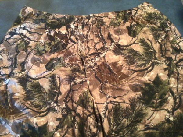 Here is a pair of camouflage flannel pants for men. These pants are kind of like Zubaz. They could be worn indoors, outdoors, or as pajamas. The fly has a button, not a zipper. KINGSIZE is the name of the manufacturer. The pants are size XXXXL. 4XL. They are still in excellent condition.