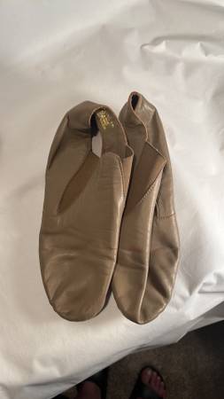 Capezio brand tan jazz shoes. Women's size 7. And great shape. One spot on brown stain on left shoe shown in photographs. Soles show little wear.