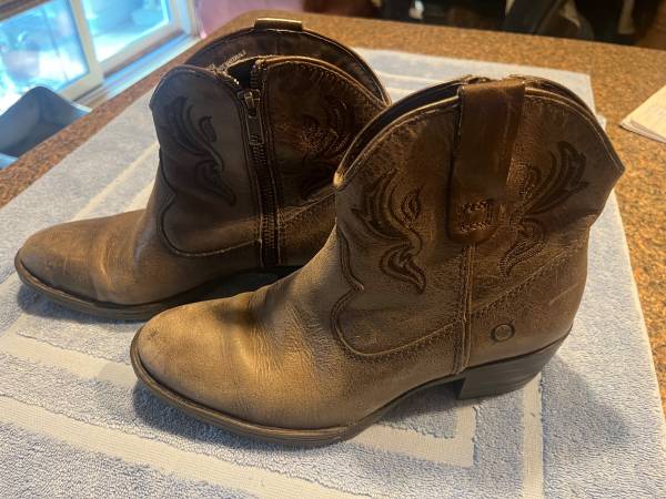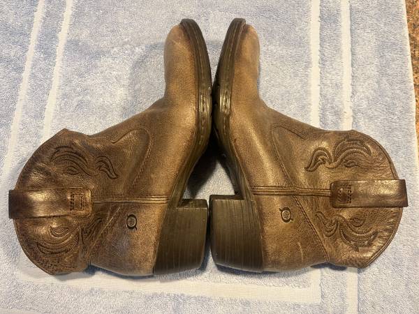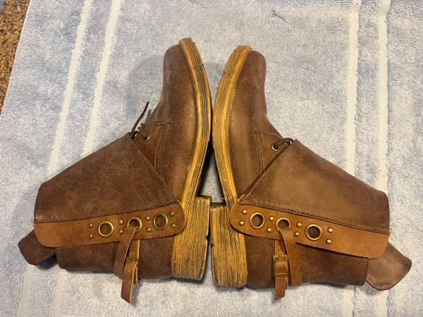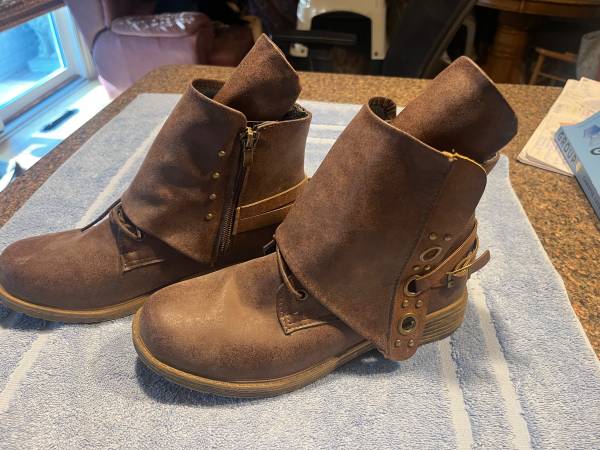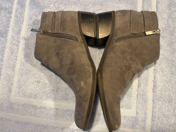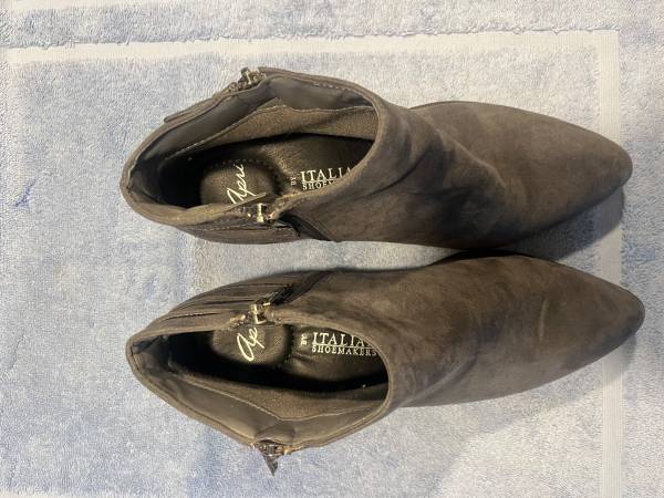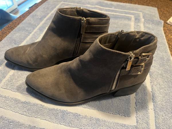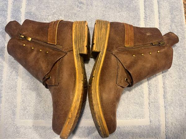 $5 A PAIR. very cute, fun, shoe boots. Size 38. I am a 7.5 and they fit. I had foot surgery so they no longer work for me. These have been worn, some hardly at all, but are unique so I thought I’d reach out see if anyone would like them. The price is right. Thanks for looking. First pair is a beautiful grey suede but the pics don’t do it any favors. Ask for additional photos if you’d like