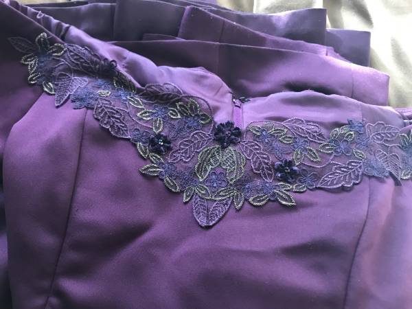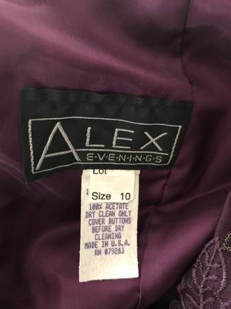 I have two floor length dresses. The color is eggplant. The Alex is size 10 and the Michaelangelo (comes with shawl) is size 4. $10 each. Cash only.