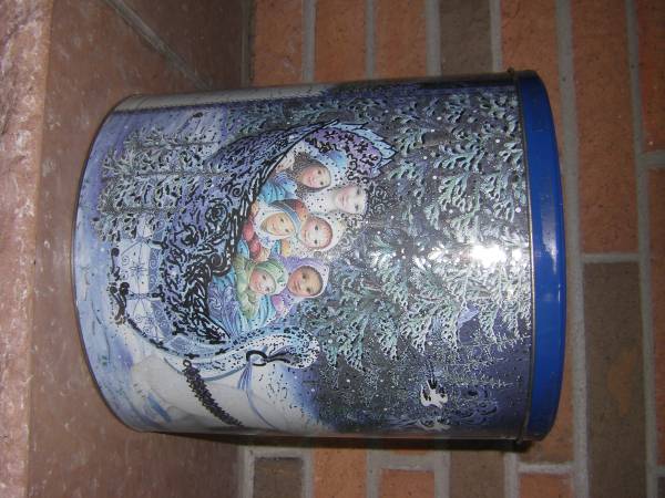 Houston Harvest metal tin containers with lids 11in tall and 10in wide great condition not bend or dented $5 each