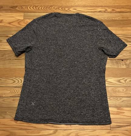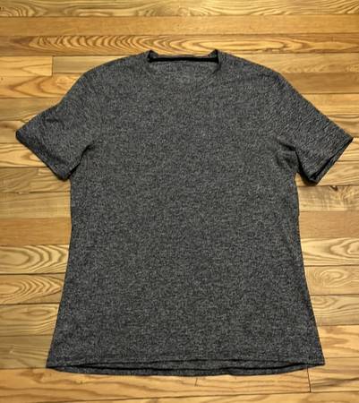 Lululemon Metal Vent Size Medium T-shirt. Chest measures: 39". Length measures: 27.5". Reflective hem on back to be seen in low light situations. Anti-stink, sweat-wicking, four-way stretch. In great shape.