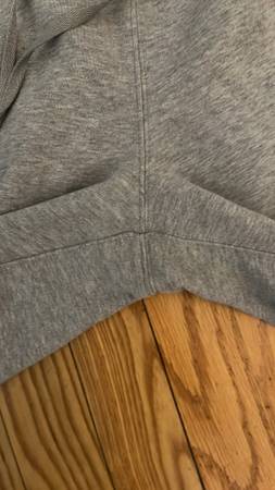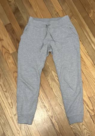 Cotton Terry fabric. Heather grey in color. Naturally breathable and soft against skin. Anti Stink Technology Zinc (zinc pyrithion) stops the growth of odor causing bacteria on the fabric. No pilling. One small repair on left pocket edge barely noticeable see photos. Women's size 6. Inseam measures approximately 27".