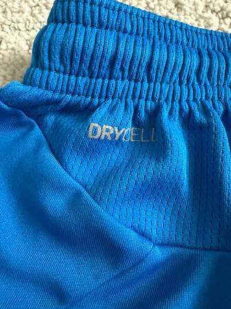Selling a pair of Men’s Puma athletic shorts, size Medium, in electric blue with a white stripe down both legs. These shorts are lightweight, comfortable, and perfect for workouts, running, or...