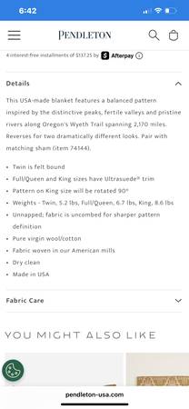 This is a king size PENDELTON Wool blanket that is in perfect condition. The blanket is 90 inches by 108 inches.