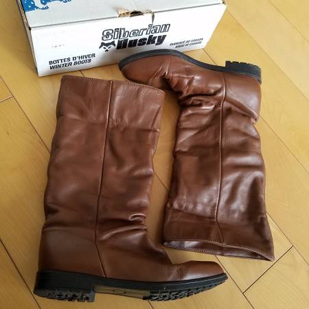 Siberian Husky - Old English Brown Leather Women's Winter Boots - Size 9 1/2 in beautiful rarely worn condition. Original owner.