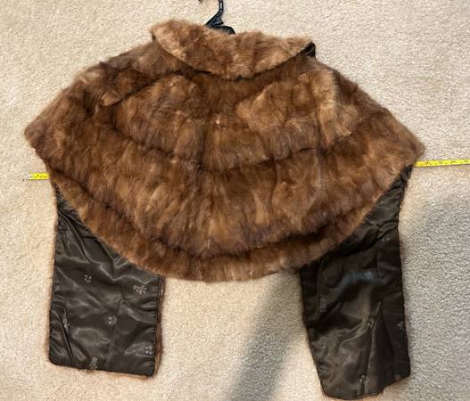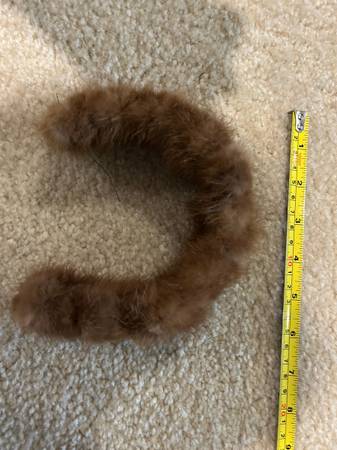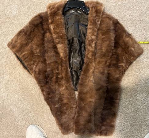 1950’s era mink stole with lined collar made by Harvey Lewis Furs of Minneapolis Minnesota. Matching hand muff fully lined with zipper and matching mink headband. Pictures show dimensions with tape measurer. Professionally cleaned and in excellent condition. Stored in smoke free and pet free home!