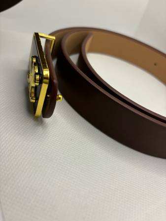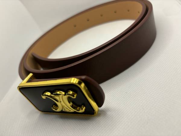 This Celine women’s belt has a brown leather strap with a black and gold buckle featuring a gold Celine logo. This belt has never been worn in for $100 and you will not find a cheaper one!