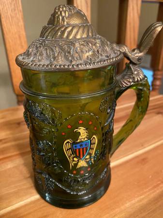BEAUTIFUL GERMAN EAGLE CREST SHIELD GREEN GLASS STEIN - $38 (Edina)