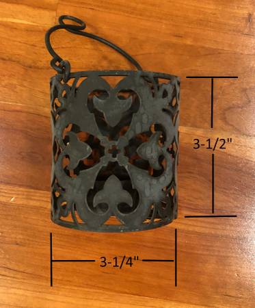 A very well-made wrought iron period piece. The 3 panels are adjustable and swivel for different placement of the unit. • 4 tiered • Wrought Iron • Panels are adjustable and swivel • Votive candle...