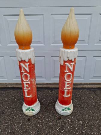 Vintage Noel light up candles sold as a pair, 40 inches tall, both in good working order.