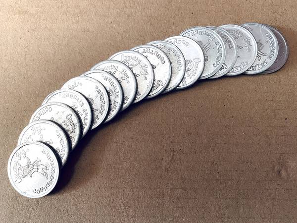 16 tokens from the Country Kitchen restaurant chain. One token used to get you one toy from the treasure chest of gumball machine quality toys. Some wear but still in decent shape. Country Boy on...