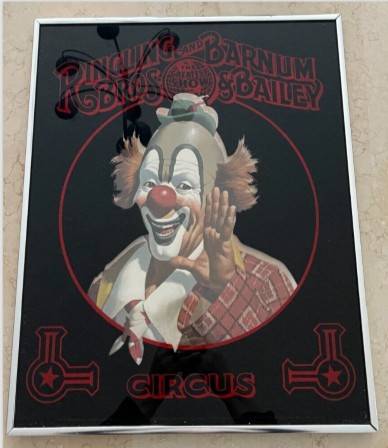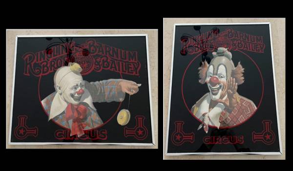 Set of 2 LARGE Ringling Bros Barnum & Bailey Circus 1980 Framed Clown Print Glass Front Art Pictures. These are just beautiful in person. They each measure 16" x 20". Perfect for any interior design theme. Ready to hang & enjoy.