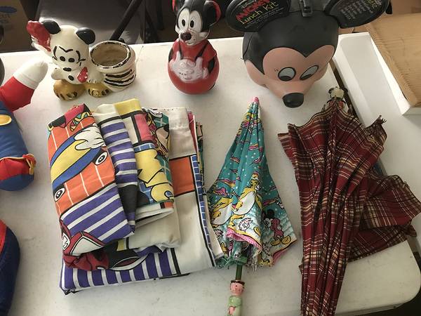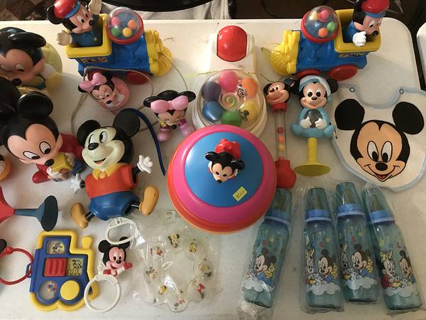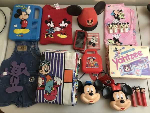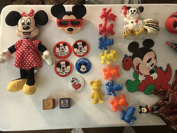 Looking for collector interested in huge lot of Mickey & Minnie Mouse collectibles and toys. Includes plastic toys, clothing, plush, books, glassware, etc. See photos. There is slightly more...