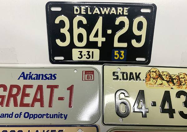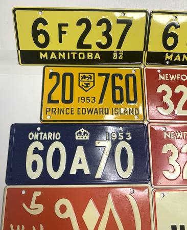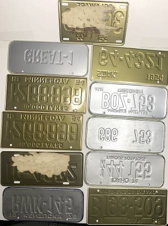 1980s breakfast cereal company mini metal license plates. Includes US States and foreign plates like Canada, Iran, and Italy. Twenty-one (21) plates total.