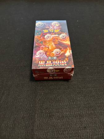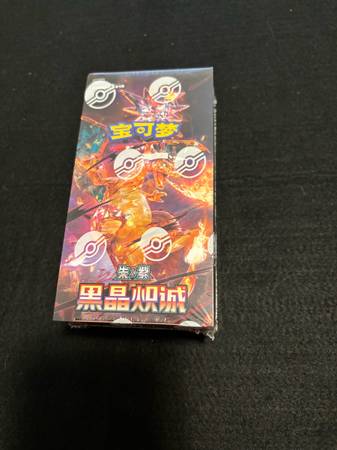 Brand new Pokemon booster box of black crystal which is the Chinese obsidian flames set. Asking $30 for the booster box. Email me if interested.