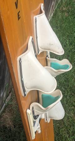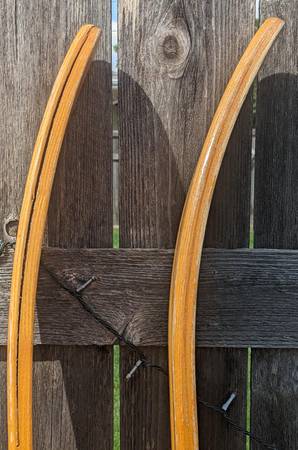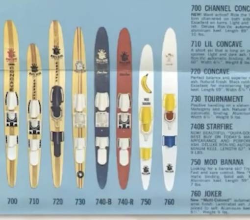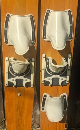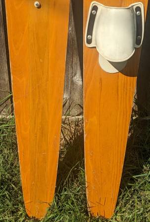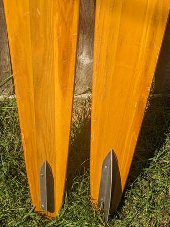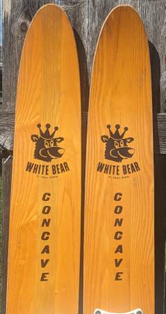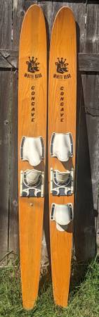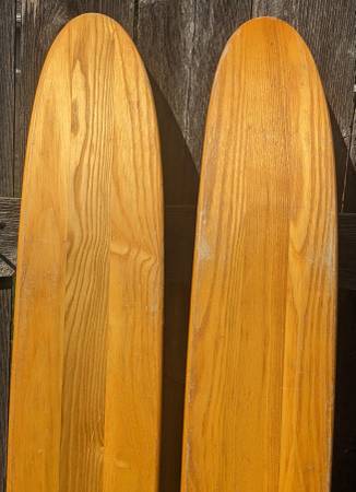 Rare pair of water skis from the heyday of the Water-Skiing craze which started in Minnesota on White Bear Lake! These wooden skis are adult size, measure approx. 68" tall and 6-1/2" wide. Made by WBWSC White Bear Water Ski Company, the premier early maker of water skis. These are from 1967 according to an old catalog page I found (see pic), model #720 Concave. I don't know anything about water skis but did some research about these rare skis. These are for display only, great for your collection! NOT FOR USE. Good vintage condition, obviously has wear from many trips over the water! one ski has separation of the wood pieces near the tip of the ski (see pics). Still display great and would be the centerpiece to your vintage collection! $200 cash firm. Can meet in the Lunds parking lot by Crosstown & Penn Ave South for a safe quick transaction. If this is still up I still have them.
