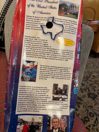 President George W Bush Talking Prez. Was late in laws. We are downsizing. Text , call or email us …. Becoming a collector item .
