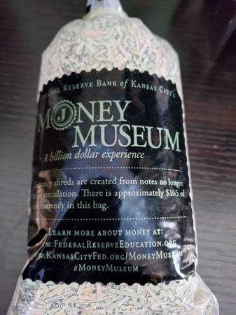 The Money Museum Bag of Shredded Currency From the Federal reserve Bank of Kansas city's money museum. Currency shreds are created from notes no longer fit for circulation. There's approximately...