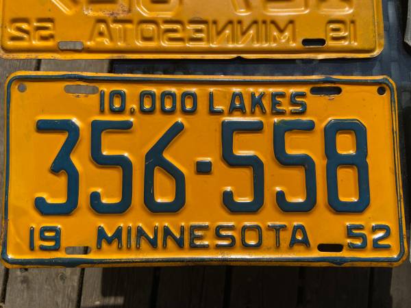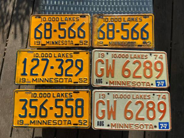 Vintage license plates from Minnesota 1952 1974 short and full size