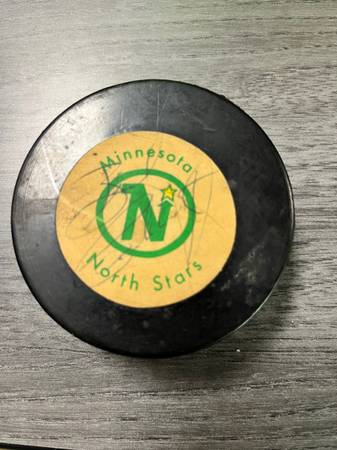 1970s Minnesota Northstar hockey puck game used signed by Bill Goldsworthy Can meet in Bloomington Edina area or White Bear Lake area