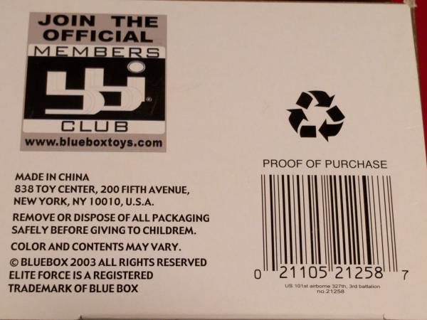 > Elite Force Model Number 21258 > Sgt. Jerry Ellis, US 101st Airborne 327th Div, 3rd Battalion > 1/6 Scale 12" height > New in box from 2003 > $100 or best offer