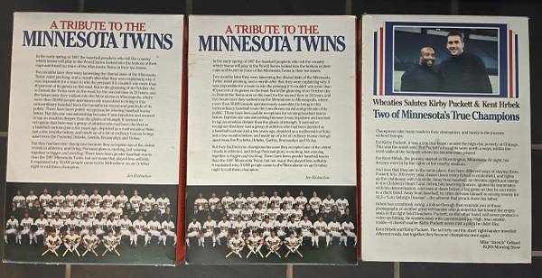 1987 and 1991 Wheaties Boxes, featuring MN Twins World Series victories. My parents collected these, the cereal is gone, they removed the cereals and resealed the boxes. 1991 box is autographed by...