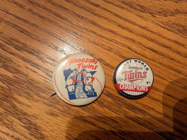 Two Minnesota twins buttons. Good condition, the back of the larger one is a little rusted. Both for $10