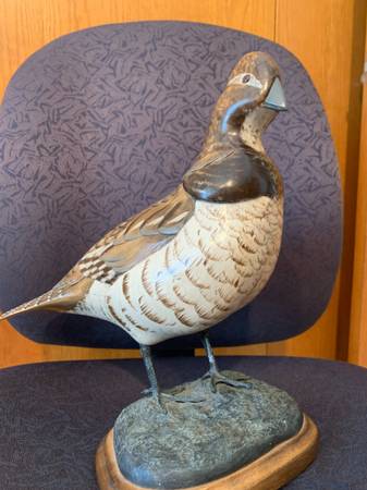 Rare Vintage Wooden Bird Factory carving of a ruffed grouse. This is a beautiful carving, signed and dated by the artist L. Schwarzkopf, 1982. The carving can easily be removed from the base.