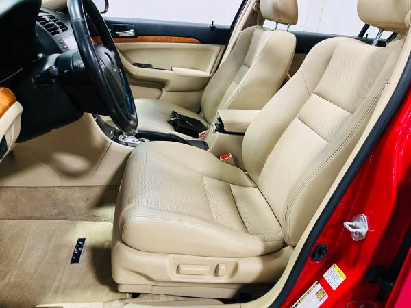 This Acura TSX Runs and Drives Great! Famous 2.4L VTEC Engine deserves its great reputation! The Milano Red finish has faded several shades. The interior is immaculate. Beige perforated Leather Sport Seats, Heated Seats and Power Seats for Driver and Passenger. Power Sunroof, Premium Audio, Michelin winter tires on 16 inch rims. Local trade in with Superb CARFAX History Report, featuring 51 Service History Records!! Check it out! No Accidents. No Smoking. Carfax Great Value and Guru's Great Deal! Awesome Winter Ready Car with Japanese Precision Engineering and Great Reliability!