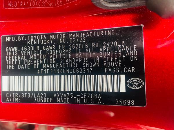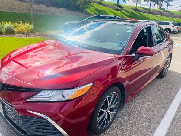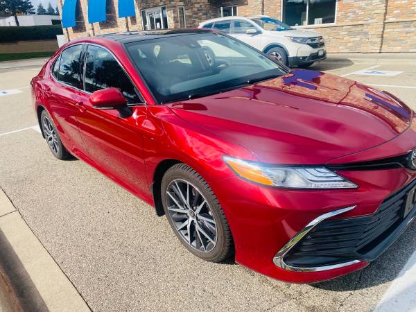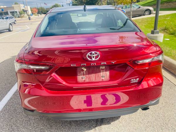 Like new, 2022 Toyota Camry XLE all wheel drive sport sedan. Rare Ruby Red Flare Pearl in color, 8 speed transmission, heated steering wheel, heated seats, all weather floor liners, opening glass roof. I have a copy of the window sticker showing the extensive list of safety options on this rare local trade in. Car has 43000 miles/clean title history. 📍 Local Pickup – Clean Title – Financing Available