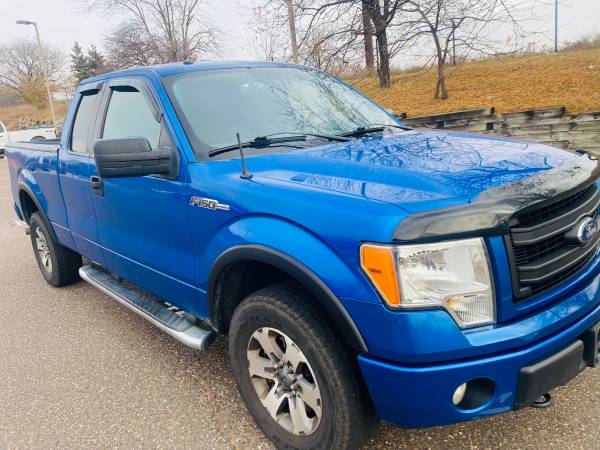 Super condition 2013 Ford F150 Super Cab 4x4 with 6.5 foot long box. Truck has Rocket fast 5.0 high output Coyote V8, Beautiful Blue in color, nice soft/clean cloth seats, spray in bed liner, nice roll up bed cover, rare6 passenger, 186000 VERY well kept miles/clean documented title. Please Call 651-775-7284. Financing available with with credit and and safe trade ins welcome. Thank you.
