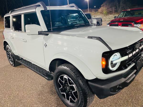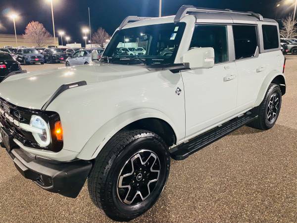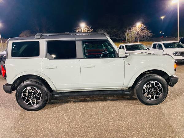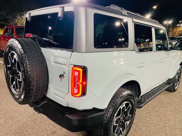 This stunning Cactus Gray 2022 Ford Bronco Outer Banks 4x4 with Dark Gray / Navy Pier Heated Leather Interior is in beautiful condition and loaded with premium features. CARFAX 1-Owner, meticulously maintained, and ready for your next adventure!