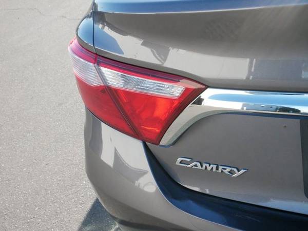 This vehicle has passed a Safety Inspection and is sold AS IS with No Warranty. New Tires, Extra Clean. Predawn Gray Mica exterior and Ash interior. Rear Body Air Bag, Wireless Cell Phone Hookup, CD Player, MP3 Player, PROTECTION PACKAGE (Q1), iPod/MP3 Input, New Tires. CLICK ME!DISCOVER THE LUTHER ADVANTAGEThe Luther Advantage is designed to make buying-and driving-a vehicle from the Luther dealerships a pleasant and convenient experience. From the peace of mind that comes with the Free CARFAX Reports & Clean Title Guarantee on pre-owned vehicles, as well as providing Luther customers with full range of valuable discounts at participating Holiday Station stores including 10 cents off a gallon, $6 for The Works car wash among other advantages. As much as we like satisfying customers, we like keeping them even more.OPTION PACKAGESPROTECTION PACKAGE (Q1) Rear Bumper Applique, Door Edge Guards, Carpeted Floor Mats & Trunk Mat.EXPERTS REPORTEdmunds.com explains The 2016 Toyota Camry provides one of the most comfortable and spacious cabins of any midsize family sedan. Theres plenty of headroom and legroom up front and not much less in back, where even taller adults will be content to ride for extended periods..Check whether a vehicle is subject to open recalls for safety issues at safercar.govHorsepower calculations based on trim engine configuration. Fuel economy calculations based on original manufacturer data for trim engine configuration. Please confirm the accuracy of the included equipment by calling us prior to purchase.