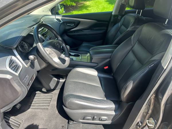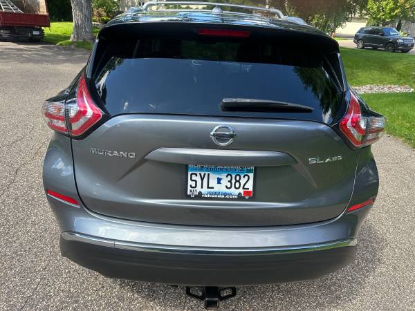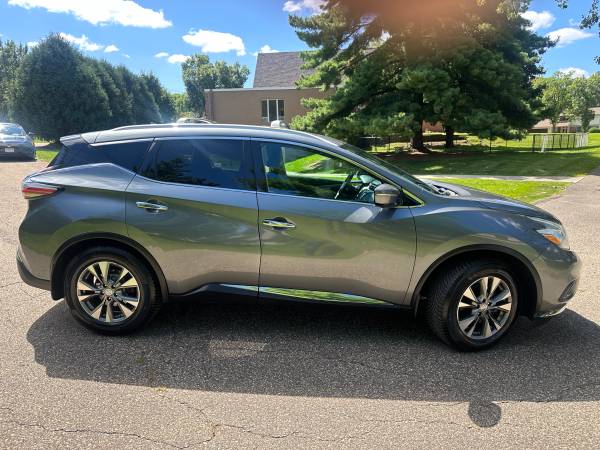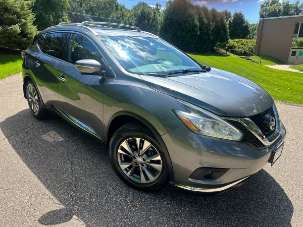 2 Owner Murano with SL Pkg.. AWD 3.5 L V6 with 245 Hp averaging 19.2 MPG in city driving...Excellent condition both physically and mechanically. 27 Services to date, Carfax shows No Accidents and 1 report of Minor damage.. No evidence of any repairs or existing Damage, scratches etc... Loaded with Options; Dual Moonroofs, Memory seats and mirrors, Heated Leather Seats, Programmable Garage door opener, Navigation and Backup Camera with Top View, Blind Spot Assist and much more.. All Wheel Drive with locking differential, 18" wheels with excellent Michelin Cross Climate all season tires measuring 90% Tread depth, Premium audio system with aux outlet and usb, am/fm/cd+++, Bluetooth ..