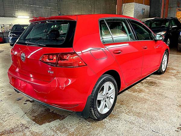 This 2015 Volkswagen Golf TDI offers an excellent blend of performance, fuel efficiency, and modern features. With its vibrant red exterior and sleek black interior, this hatchback is both stylish and practical.