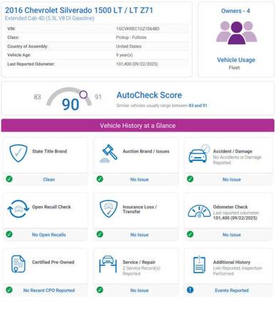 This vehicle comes with a clean title, and no accidents or damage ever reported. Available at our Crystal location, Unleash serious power and rugged capability with this 2016 Chevrolet Silverado LT Z71 4X4, built to handle any challenge on or off the roads. Under the hood, the powerful 5.3L V8 engine delivers robust towing and hauling performance, all while maintaining a respectable 22 HWY MPG. The Z71 Off-Road Package provides an upgraded suspension, underbody shields, and hill descent control, ensuring confident performance on rough terrain. Inside, the LT trim offers a comfortable, well-equipped cabin with modern connectivity and a reliable infotainment system for your convenience. This truck perfectly balances workhorse functionality with the comfort and features you need for daily driving. Ready for immediate action, this highly capable Silverado is the reliable, V8-powered 4X4 truck you’ve been searching for. Come on down to RavMotors of Crystal to test-drive our cars! We'll be happy to help you find the right car at the right price. Call for vehicle availability at 763-401-4242. Make sure to check out our inventory at www.ravmotors.com We stand behind all of our cars. We are open from 10:00 AM - 7:00 PM on Monday-Thursday and 10:00 AM - 6:00 PM on Friday-Saturday.