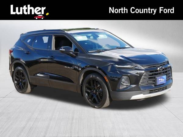Non-Smoker vehicle, Ford Blue Certified, CARFAX 1-Owner. FUEL EFFICIENT 25 MPG Hwy/18 MPG City! WiFi Hotspot, Onboard Hands-Free Communications System, Dual Zone A/C, Satellite Radio, AWD, CONVENIENCE AND DRIVER CONFIDENCE PAC. LPO, 20 (50.8 CM) GLOSS BLACK ALUMIN. Non-Smoker vehicle READ MORE!DISCOVER THE LUTHER ADVANTAGEThe Luther Advantage is a complete and comprehensive package of benefits designed to make buying-and driving-a vehicle from the Luther dealerships a pleasant and convenient experience. From the peace of mind that comes with a 5 Day-500 Mile Return or Exchange Policy, 30 Day 1,500 miles Full Warranty and 60 Day 2,500 miles Limited Powertrain Warranty and Free CARFAX Reports & Clean Title Guarantee on pre-owned vehicles, as well as providing Luther customers with full range of valuable savings at participating Holiday Stationstores including 10 cents off a gallon, $6 for The Works car wash among other advantages and guarantees. As much as we like satisfying customers, we like keeping them even more.WHY BUY FROM US?Luther North Country Ford has the largest selection of new & certified pre-owned Ford inventory in the area. Part of the Luther Auto Family & the Luther Advantage, benefit from gas & car wash discounts to specials on repairs. The Luther Advantage gives our customers a full range of discounts, advantages & guarantees. 5 Day-500 Mile Exchange Policy, CarFax Reports, Fixed Right Guarantee & On-Time Promise on repairs. As much as we like satisfying customersPURCHASE WITH CONFIDENCEEvery Blue Certified used vehicle must pass a 139-point inspection, Service available at any Ford Dealer in the 50 states, and a manufacturer-backed 90-Day/4,000-Mile (whichever comes first) Comprehensive Limited Warranty, and Complimentary 24/7 Roadside Assistance, 11,000 FordPass Rewards Points to use towardscheduled maintenance visits or other rewards, CARFAX Vehicle History Report included, Complimentary SiriusXM 3-month trialOPTION PACKAGESLPO, 20 (50.8 CM) GLOSS BLACK ALUMINUM WHEELS includes (SKL) transit wheels and (QNU) P235/55R20 all-season blackwall tires, CONVENIENCE AND DRIVER CONFIDENCE PACKAGE includes (BTV) Remote Start, (KA1) driver and front passenger heated seats, (UG1) Universal Home Remote, (TB5) power programmable liftgate, (V59) roof-mounted side rails, (UKC) Lane Change Alert with Side Blind Zone Alert, (UFG) Rear Cross Traffic Alert, (UD7) Rear Park Assist, (DD8) auto-dimming inside rearview mirror and (DM8) auto-dimming outside heated power-adjustable manual-folding body-color mirrors with turn signal indicators, LPO, BLACK LUG NUT AND WHEEL LOCK KIT includes 20 lug nuts, 4 locks and 1 key. LPO, INTERIOR PROTECTION PACKAGE includes (VAV) premium all-weather floor mats, LPO and (VLI) cargo mat, LPO, AUDIO SYSTEM, CHEVROLET INFOTAINMENT 3 SYSTEM 8 diagonal color touchscreen, AM/FM stereo. Additional features for compatible phones include: Bluetooth® audio streaming for 2 active devices, voice command pass-through to phone, Apple CarPlay® and Android Auto® capable. (STD), ENGINE, 3.6L V6, SIDI, DOHC WITH VARIABLE VALVE TIMING (VVT) and Active Fuel Management with Stop/Start (308 hp [230 kW] @ 6600 rpm, 270 lb-ft of torque [365 N-m] @ 5000 rpm) (STD), TRANSMISSION, 9-SPEED AUTOMATIC, ELECTRONICALLY-CONTROLLED with overdrive, includes Driver Shift Control (STD).EXPERTS CONCLUDECountering its competitors strengths, the Blazer charms with daring style, satisfying road manners, and a generous standard-equipment list. Its name might recall the past, but the 2019 Chevy Blazer is properly suited for the needs of modern SUV buyers. -KBB.com. Excellent ConditionCheck whether a vehicle is subject to open recalls for safety issues at safercar.govHorsepower calculations based on trim engine configuration. Fuel economy calculations based on original manufacturer data for trim engine configuration. Please confirm the accuracy of the included equipment by calling us prior to purchase.