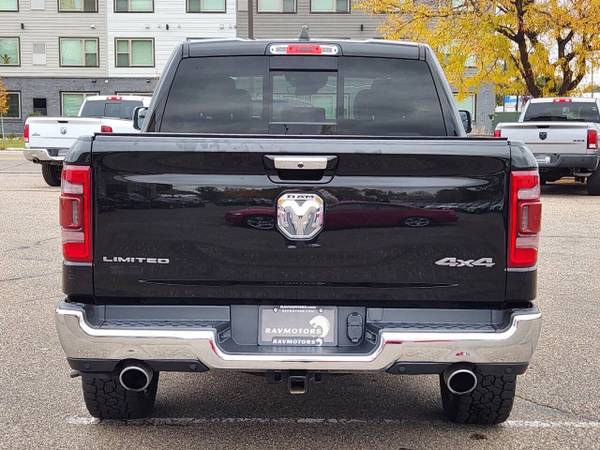 This vehicle comes with a clean title. Available at our Crystal location, Experience the ultimate combination of luxury and capability in this exceptional 2019 Ram 1500 Limited 4X4. Under the hood, the legendary 5.7L HEMI V8 engine delivers robust power and a satisfying roar, perfectly suited for heavy-duty work or effortless highway cruising. Despite its formidable strength, this truck still achieves a respectable 21 HWY MPG, demonstrating remarkable efficiency for a full-size V8. The top-tier Limited trim spoils you with premium features like real wood trim, premium leather seating, and the massive Uconnect touchscreen system. Equipped with a reliable 4X4 system, this Ram is prepared to handle challenging terrain and all seasonal changes with ease. Don't miss your chance to own a low-mileage truck that redefined truck luxury, test drive this outstanding Ram 1500 Limited today!