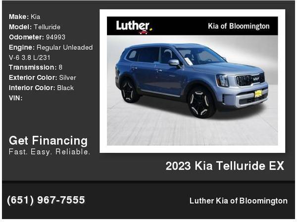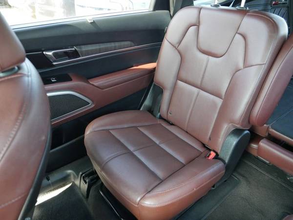 JUST REPRICED FROM $28,494, $6,600 below J.D. Power Retail!, EPA 24 MPG Hwy/18 MPG City! CARFAX 1-Owner, Clean. Heated Leather Seats, Third Row Seat, Navigation, Moonroof, Rear Air, All Wheel Drive, Power Liftgate, Aluminum Wheels CLICK ME!KEY FEATURES INCLUDELeather Seats, Navigation, Sunroof, All Wheel Drive, Power Liftgate, Rear Air, Heated Driver Seat, Cooled Driver Seat, Back-Up Camera, Satellite Radio, iPod/MP3 Input, Onboard Communications System, Aluminum Wheels, Remote Engine Start, Dual Zone A/C Rear Spoiler, MP3 Player, Rear Seat Audio Controls, Privacy Glass, Remote Trunk Release.OPTION PACKAGESEX CAPTAINS CHAIR PACKAGE 2nd Row Captain Chairs, reclining feature, CARPET FLOOR MATS. Kia EX with Everlasting Silver exterior and Black interior features a V6 Cylinder Engine with 291 HP at 6000 RPM*.EXCELLENT SAFETY FOR YOUR FAMILYLane Keeping Assist, Cross-Traffic Alert, Blind Spot Monitor, Child Safety Locks, Electronic Stability Control, Brake Assist, 4-Wheel ABS, 4-Wheel Disc Brakes, Tire Pressure Monitoring System Great Gas Mileage: 24 MPG Hwy.MORE ABOUT USAt Luther Kia of Bloomington we have the largest selection of new and Certified Pre-owned Kias and has been ranked #1 for Certified Pre Owned Kias in the Midwest for over 4 years. With this amazing selection of Certified Pre Owned vehicles you will receive the outstanding 10 year or 100,000 Mile Limited Powertrain Warranty along with the outstanding Luther Advantage. As part of the Luther Auto Family each vehicle comes with amazing benefits from $.10 off per gallon of gas & Holiday Gas Station tCheck whether a vehicle is subject to open recalls for safety issues at safercar.govHorsepower calculations based on trim engine configuration. Fuel economy calculations based on original manufacturer data for trim engine configuration. Please confirm the accuracy of the included equipment by calling us prior to purchase.