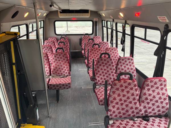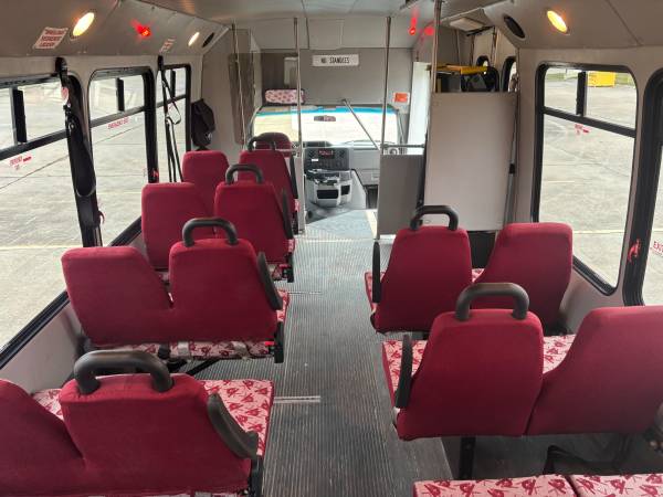 6.8L V10 gas engine, automatic transmission, 18 passenger, 4 ambulatory positions, Braun Century 2 wheelchair lift, cruise, tilt, dual high output heat and A/C, bluetooth stereo, new batteries, both new OEM idler pulleys, new bearings in bus side idler, new tensioner assembly with pulley, new serpentine belt, new transmission cooler lines, new radiator, one owner, fleet maintained. Call Gregg for more info. See more of our inventory at centurybussales.com