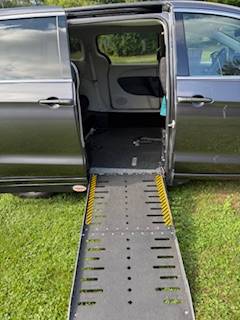 We have a 2022 Chrysler Voyager Mobility Van, color is granite, Interior is black. This is an adaptive mobility van that makes easy access in transporting someone in a wheelchair or scooter. Conversion information includes automatic side entry (both sides), automatic fold out side ramp, automatic back door, and is in excellent condition. Front passenger seat can be removed. There is also a back seat for passengers. Available now.