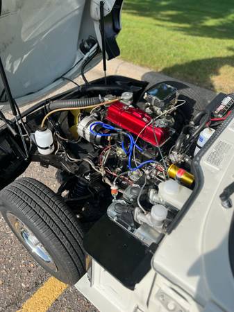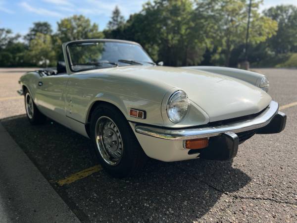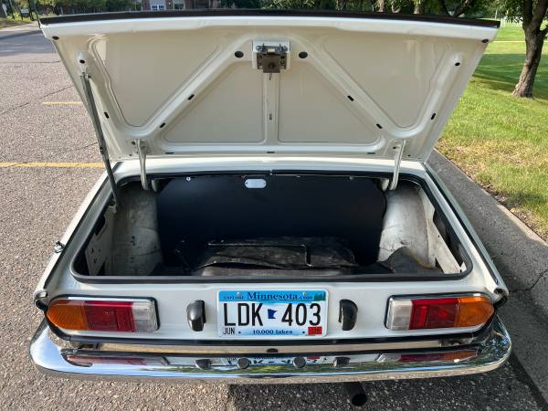 Listing for sale my 1980 Triumph Spitfire 1500. I bought it off a fellow member of the Minnesota triumph club a couple years ago while I was looking for a solid rust free spitfire as a car to improve over the winter. This is my 4th spitfire and my 7th triumph. I’m a big fan of spits. I removed the interior, motor/trans/diff and did a light restoration. The car was solid and ran good but it needed improving. It was repainted in the original white in the 90s and holds up really well. Engine bay was stripped and painted with POR. Engine stripped and painted. Two hairline cracks in the paint on the hood and some light scratches where the hardtop meets the rear deck. The only things that need doing is the windshield has scratch’s where the wiper blade was bad.