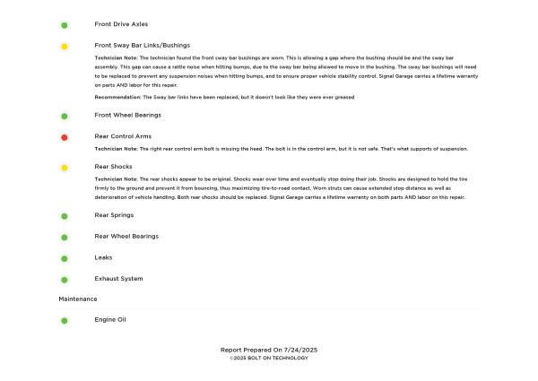 Please see the recent inspection report in the images for further descriptions of problems and the statuses of other systems.