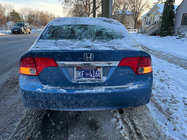 Selling my Honda civic because I just bought a new car. 1 owner and 0 accidents. Driven mostly in Tennessee and still has TN tags. Only driven in MN about 4 years and I haven’t put many miles on it since. I also had rust protection undercoating put on it after my first winter here. The car is mechanically fine and had a major tune up about 4 years ago when I drove it from TN to MN. It’s starting to have some electrical issues: electric gas meter isn’t always accurate, HVAC works but changing the settings such as going from air to the face to air to face and feet takes a couple tries to work, the wiring for one of the blinkers makes a quick ticking sound when the blinker is on making it seem like the blinker light is out and needs replacing but the blinker works fine (and the bulb has been replaced). Other minor issues include a ‘gas cap’ notification and the windshield trim also needs to be replaced which is a simple fix. Cosmetically has some dents and scratches. See photos. $4000 OBO