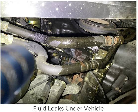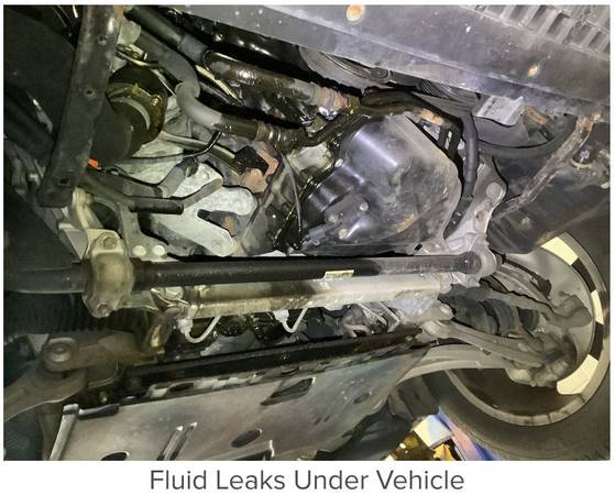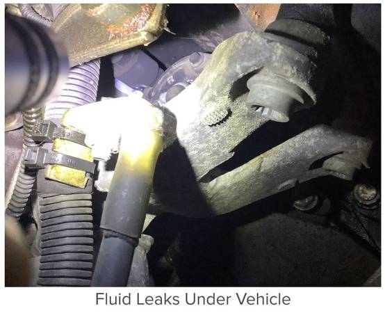 Attempt to start, makes a click then smokes from starter. Push into shop, test battery, discharged. Charge battery, attempt to start, same click no start problem. Hoist vehicle, attempt to turn engine by hand, it’s stuck. Get bigger tool to turn engine, it moved then became easier to turn by hand. Suspect engine got stuck and stalled, burned out starter trying to restart. Check oil, extremely dark, spillage around oil cap, leaking from multiple areas under engine. Check oil change sticker, two years 12000 past sticker. Scan test all modules for codes, numerous codes in multiple systems. Current pcm codes p3054 starter doesn’t run p0321 engine speed sensor. No further testing can be performed until engine can crank and start. Inspect starter, connector is melting. Need to remove starter to inspect wiring, starter will need replacement, wires may need repairs or replacement. Possible engine damage due to oil problems. Age and Condition of Tire(s) Tread Depth Below 3/32 Requires Replacement. License Plate Light Out."