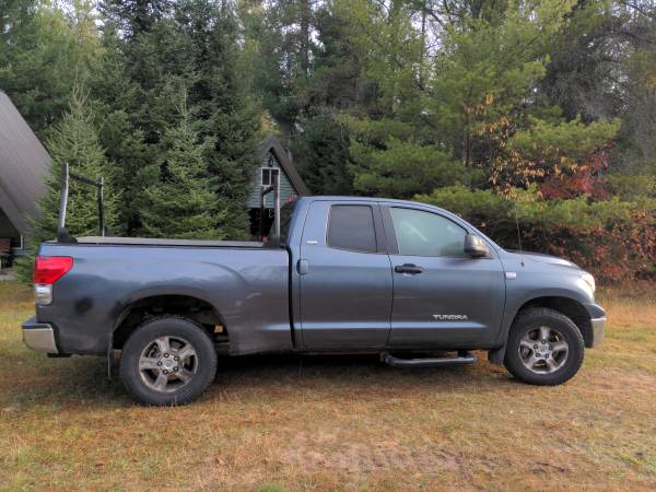 This 07 tundra is in pretty good condition for it's age. I've tried to show everything in the photos so look closely. It runs and drive great. Recent work includes new brakes (pads, rotors and calipers) on all wheels, new front and rear shocks, new automatic transmission pump and a new evap canister. Tires are fair but should go through the winter. The cruise control doesn't work and the CEL light is on. The code is for a "very small leak" in the evap system. Most people ignore it.